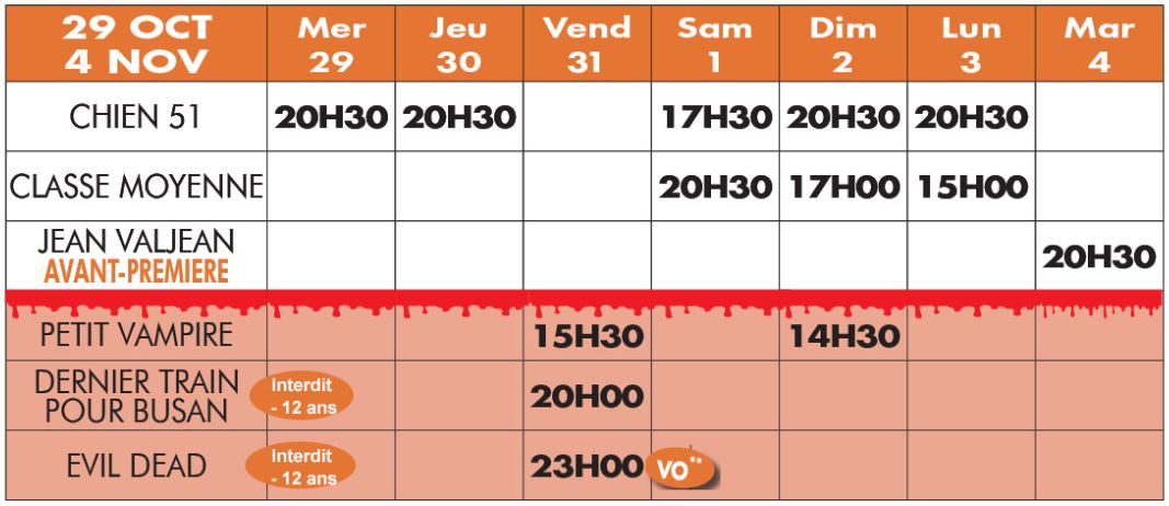 Programme de la semaine du 29 octobre au 4 Novembre 2025