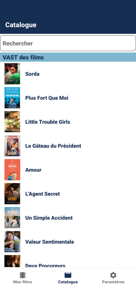 Ensuite, vous venez en salle avec votre smartphone et des écouteurs. Vous lancez l’application et allez chercher le film, dans la rubrique « Mes films » que vous activez.